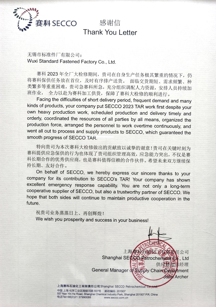 近日,我司收到客户的感谢信一封,信中表达了对我司服务的肯定与认可,也是对我司全体员工的鼓励和鞭策。我们始终坚持“以顾客为关注焦点”、“满足并超越顾客的要求为已任”、“不断创新,持续改进”,为顾客提供优质的产品与服务。