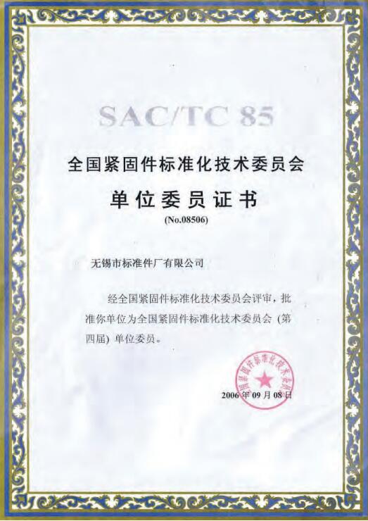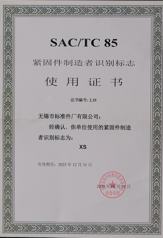 SAC/TC85紧固件制造者识别标志使用证书